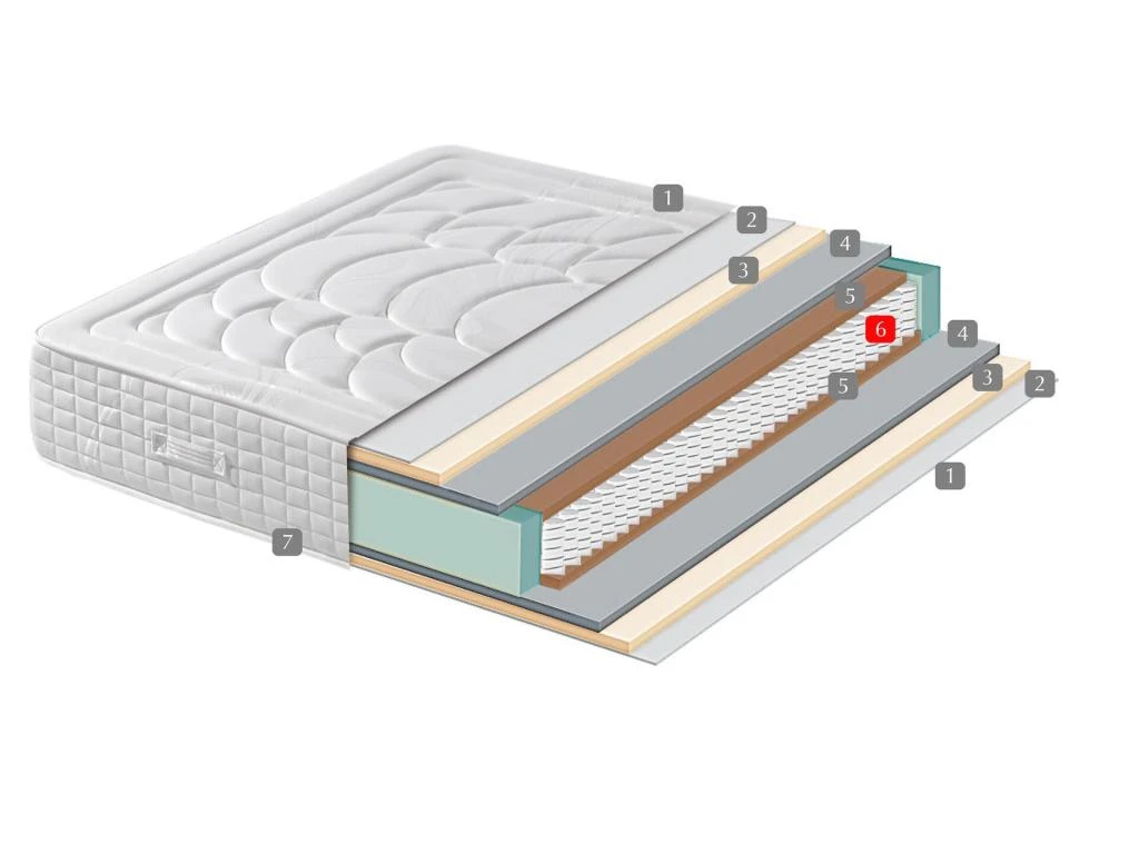 Matelas Paris avec âme à ressorts ensachés CONFORTSAC double face avec 6 cm de mousse à mémoire de forme (3 cm de chaque côté).