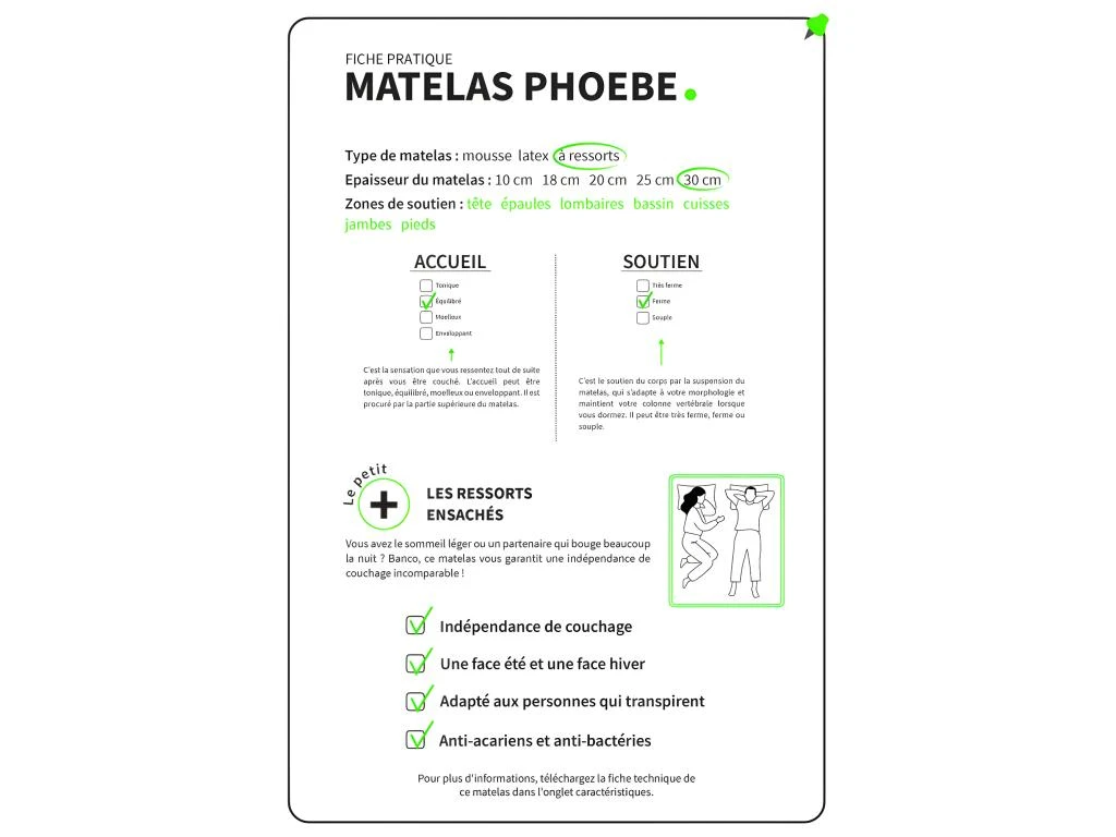 - Epaisseur matelas (cm) : 30 cm