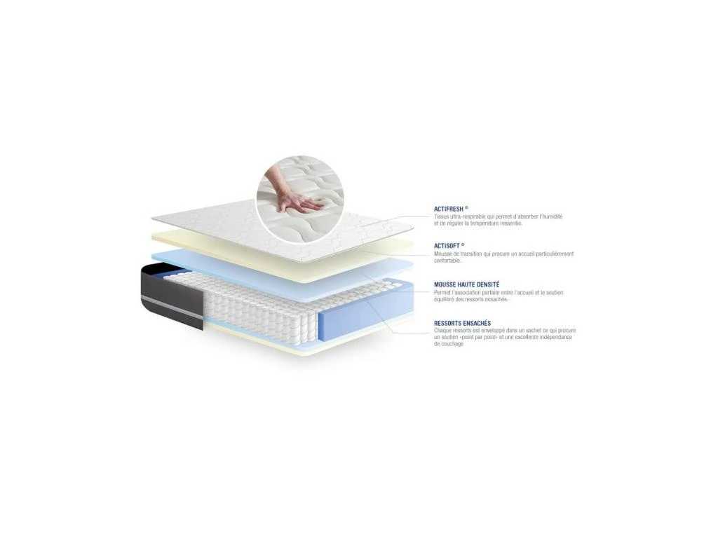 L’avis de notre expert: le modèle Actiflex TOUCH bénéficie d’un confort équilibré. Ce matelas hybride doté de 3 zones de confort est composé de 2 technologies : mousse Actisoft et ressorts ensachés. Cette association de technologies permet de bénéficier d’un soutien morphologique très précis et d’une parfaite indépendance de couchage. Elle vous assure donc une totale liberté de mouvement.