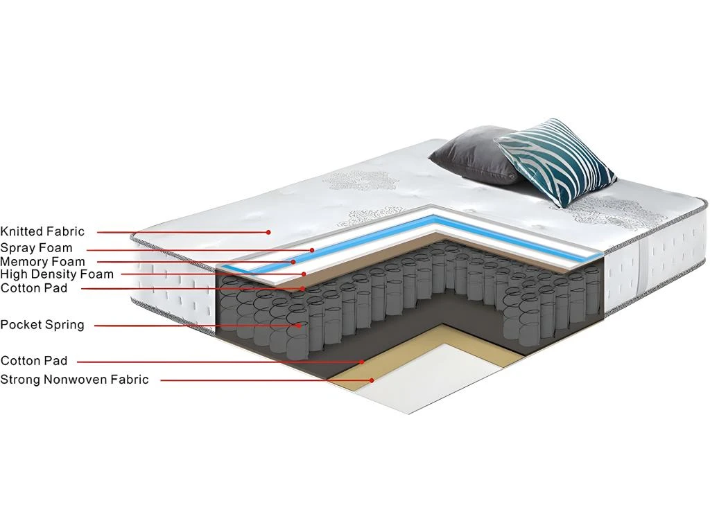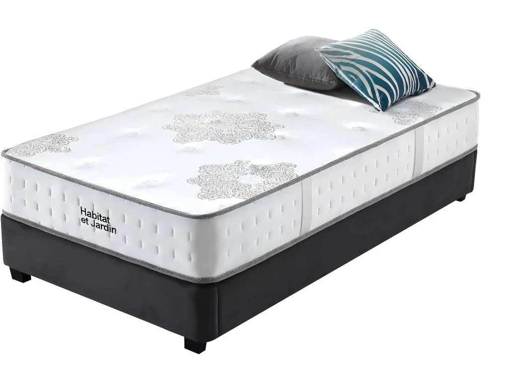 Descriptif : Matelas à ressorts ensachés et à mémoire de forme 4 poignées verticales pratiques Taille optimale après 7 jours Poids maximum supporté : 100 kg.