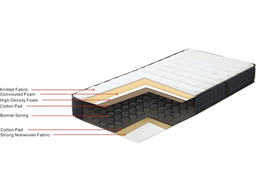 Ame : Ressorts Bonnell – 2.3 mm Quantité de ressorts : 336 Hauteur : 15.5 cm.