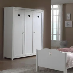 Armoire Penderie 3 Portes Blanche Motifs Coeurs Ajourés de la gamme Milady.