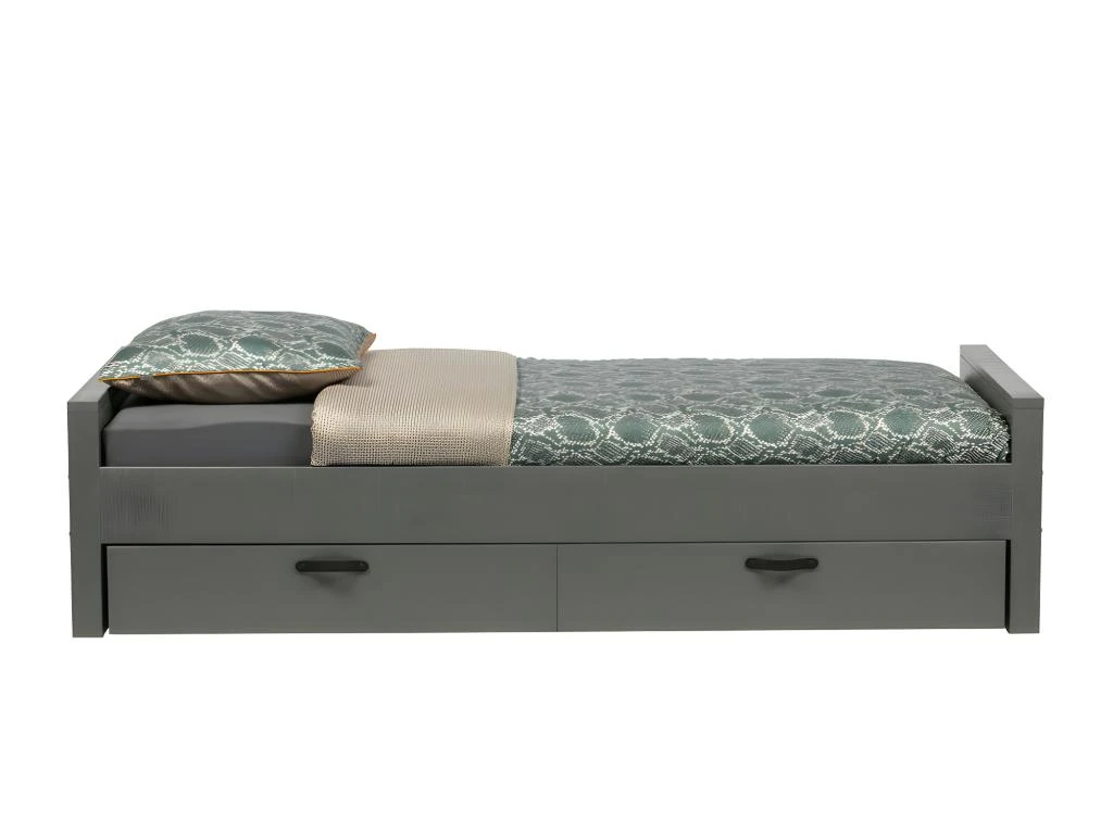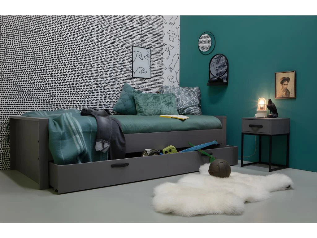 La façade se pare d’un aspect vintage grâce à la texture sablée rustique. Cette particularité est obtenue par le sciage en travers du bois. On observe les inégalités, les petites imperfections et les minimes fissures en surface. Ce qui confère à ce tiroir Morris, un look atypique séduisant. Tout comme le lit qu’il accompagne, ce tiroir bénéficie d’un atout écologique. Il est fabriqué en bois géré durablement, certifié FSC Mix. Pour plus de style, le tiroir est doté d’une poignée en cuir noir.