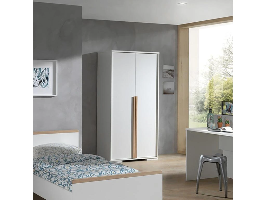 Armoire 2 Portes Blanche et Bois de la gamme Nash White.