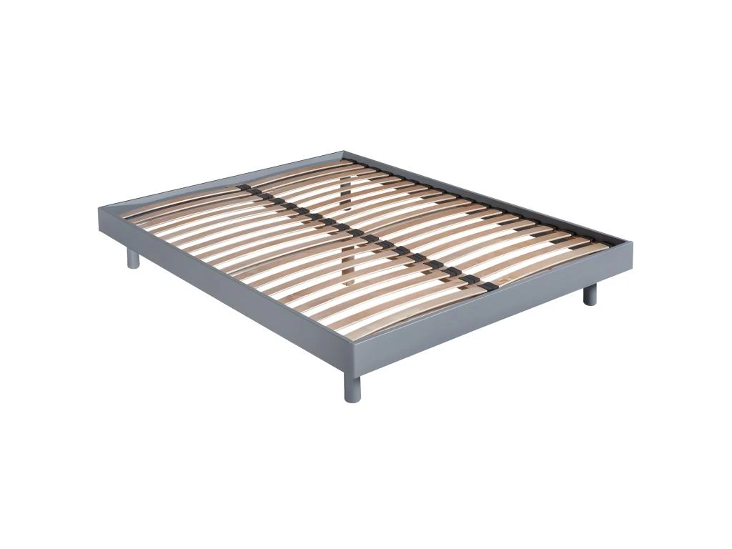 Structure en pin massif teinté gris. Sections longs pans et courts pans : 120 x 22 mm. Traverses en pin massif et barre centrale en sapin massif section 90 x 22 mm. Livré avec un jeu de 4 pieds Diam 60 mm assortis + 1 pied central. Lattes multiplis bois et embouts polypropylène. Livraison en Kit, avec visserie et notice de montage.
