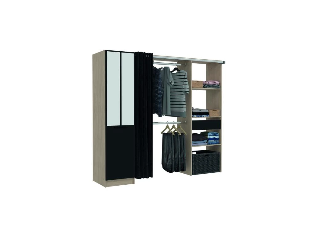Dressing D’angle Avec Rideau Et 1 Porte – Avec Miroir – L231 Cm – Blanc Et Gris – BERTRAND