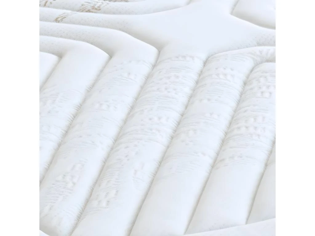 - Âme intérieure du matelas (certifiée CertiPUR) : 16 cm de mousse Biogreen de 36 kg/m³ à base de microcellules et huiles essentielles végétales + 4 cm de mousse viscoélastique à mémoire de forme de 50 kg/m³ enrichie avec de l’extrait d’aloe vera