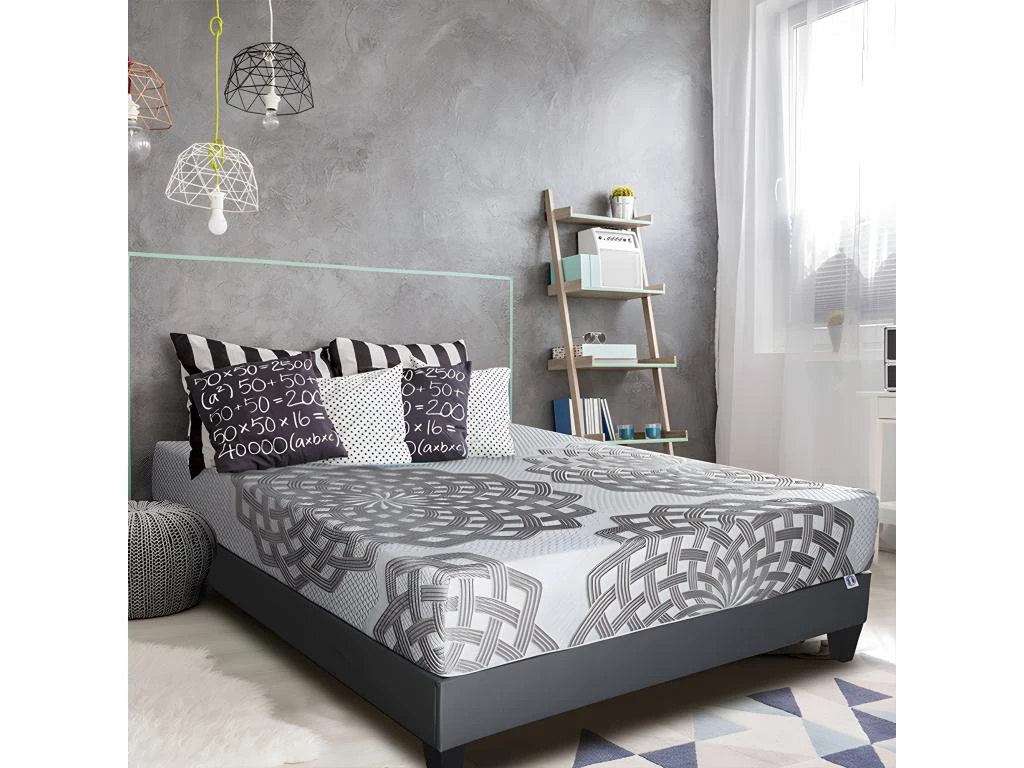 - Âme intérieure du matelas (certifiée CertiPUR) : 17,5 cm de mousse Haute Densité de 33 kg/m³ + 6,5 cm de mousse viscoélastique à mémoire de forme de 60 kg/m³