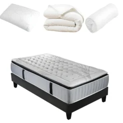 - Âme intérieure (CertiPUR) : Ressorts ensachés (850 sur la base d’un matelas de 140 cm de largeur) + 1 cm de mousse viscoélastique à mémoire de forme + 2,5 cm de mousse hypersoft