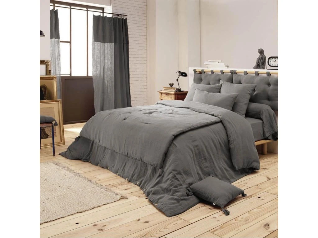 Sur votre structure de lit, ou à l’aide d’une barre à fixer, créez-vous une belle tête de lit élégante et confortable. Une conception en double gaze de coton, légère, fluide et confortable. Une matière qui gagne en souplesse et en douceur au fil des lavages. Naturellement froissée : pas besoin de repasser !