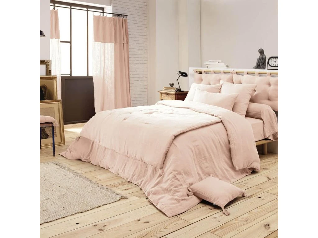 Sur votre structure de lit, ou à l’aide d’une barre à fixer, créez-vous une belle tête de lit élégante et confortable. Une conception en double gaze de coton, légère, fluide et confortable. Une matière qui gagne en souplesse et en douceur au fil des lavages. Naturellement froissée : pas besoin de repasser !