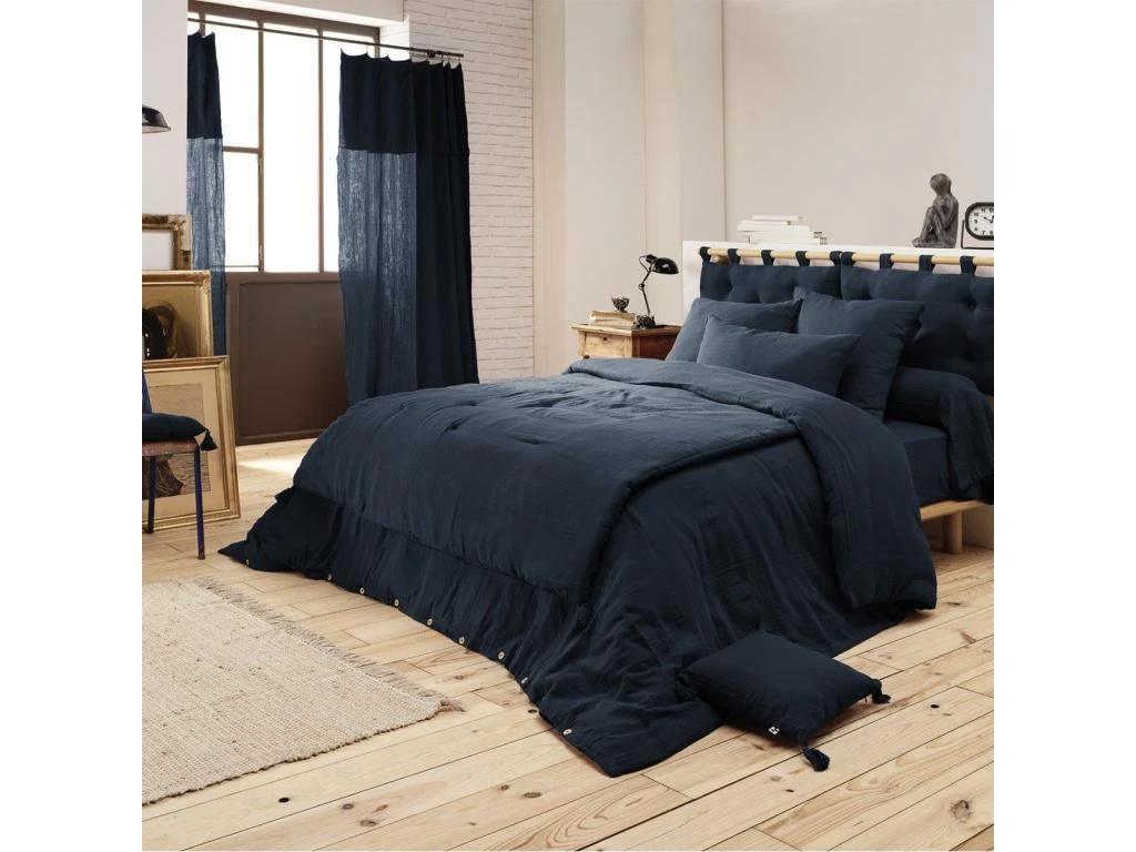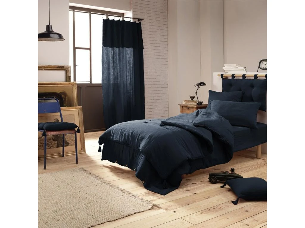 Sur votre structure de lit, ou à l’aide d’une barre à fixer, créez-vous une belle tête de lit élégante et confortable. Une conception en double gaze de coton, légère, fluide et confortable. Une matière qui gagne en souplesse et en douceur au fil des lavages. Naturellement froissée : pas besoin de repasser !