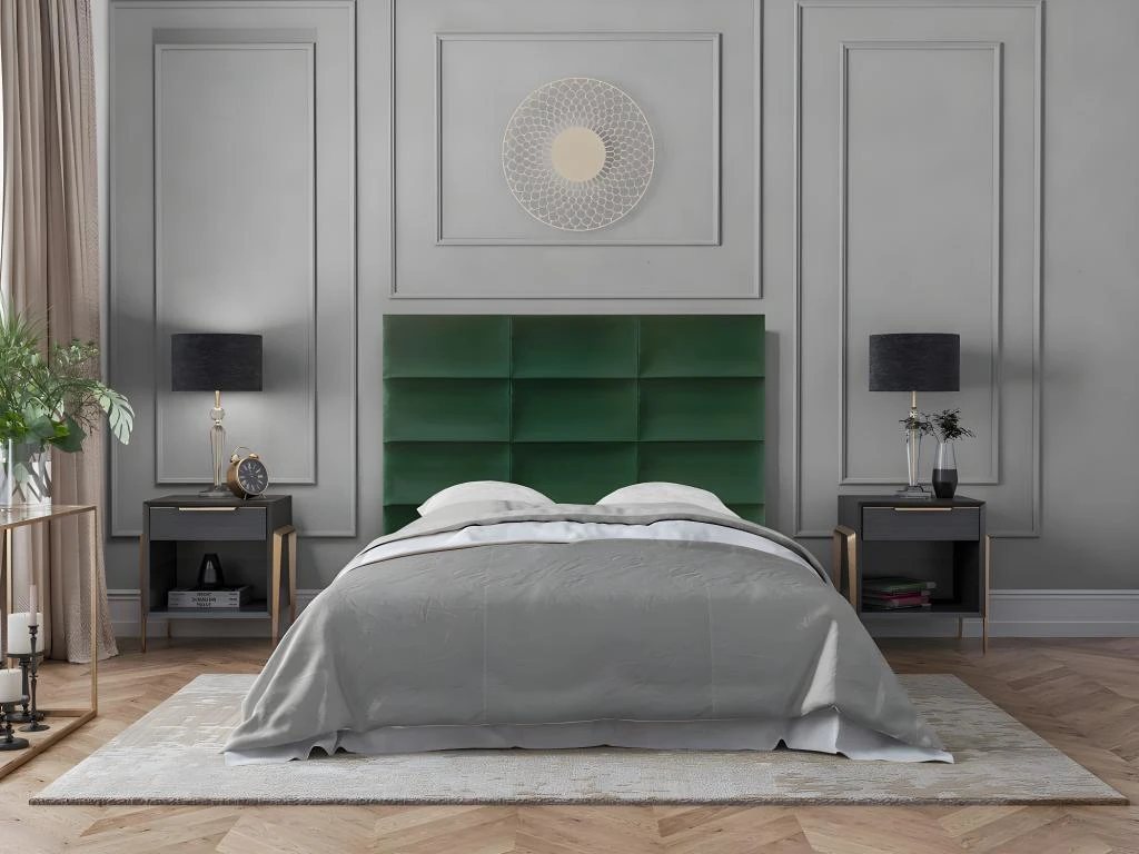La tête de lit BONTE se compose de 12 panneaux séparés à disposer comme vous le souhaitez sur votre mur grâce à de l’adhésif. Vous pourrez aussi bien le placer derrière un lit qu’un canapé par exemple. Enfin son velours donnera un aspect chaleureux à votre intérieur.