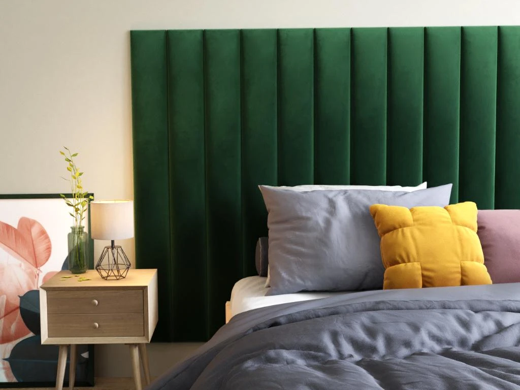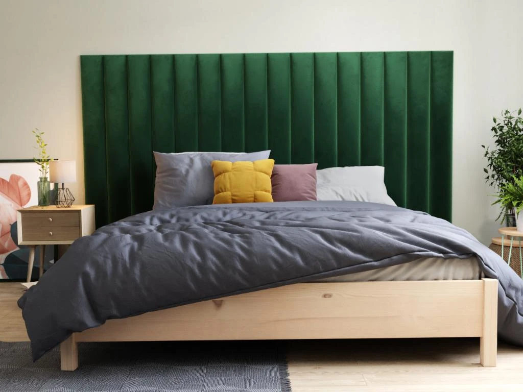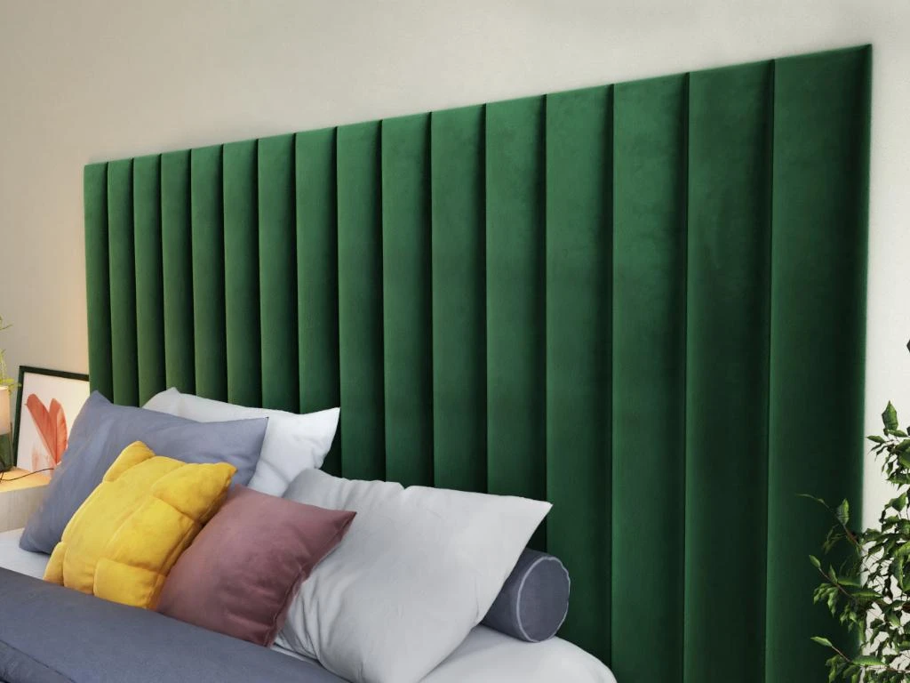 Réchauffez l’atmosphère avec la tête de lit GONDA grâce à son velours disponible en plusieurs coloris. Vous pourrez disposer les 15 panneaux muraux à votre guise et facilement puisqu’ils se fixent avec l’adhésif fourni.