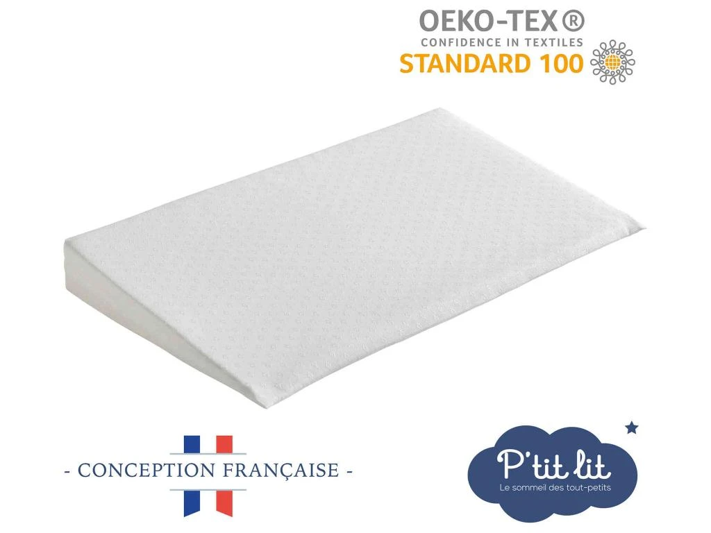 Plan incliné bébé déhoussable, idéal pour prévenir des régurgitations lorsque bébé est encombré. Son inclinaison de 10° permet de lui maintenir la tête légèrement relevée.