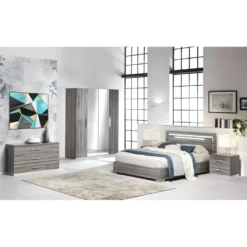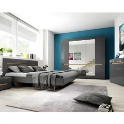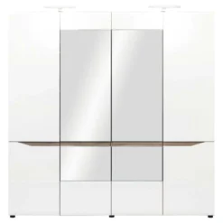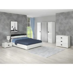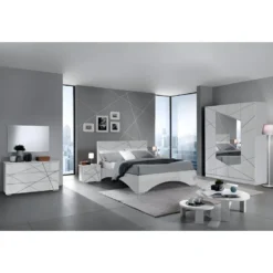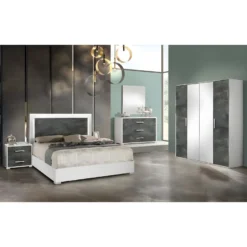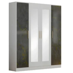Armoire 4 Portes Battantes Blanc/Marbre Gris Brillant – MARGUERITE – L 162 X L 52 X H 199 Cm