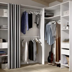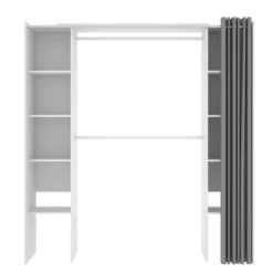 Dressing Ouvert Avec Rideau Et étagÚres Blanc Et Gris Graphite, 112 X 209 X 50 Cm