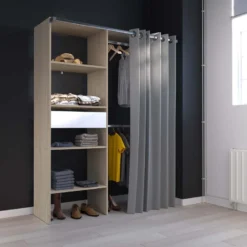 Paris – Dressing ChĂȘne Avec Rideau, 4 Ă©tagĂšres, 2 Penderies Et 1 Tiroir : 143 X 48 X 182 Cm