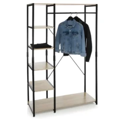 NICE – Dressing Industriel Bois Avec Rideau Noir Et 2 Penderies, 6 Ă©tagĂšres Et 1 Tiroir Noir
