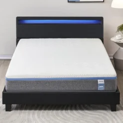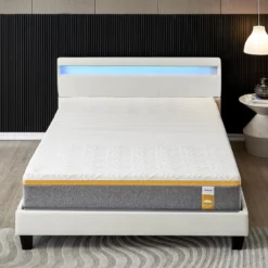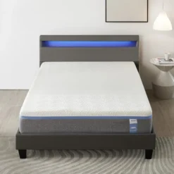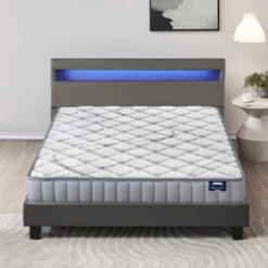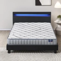 Ensemble Matelas Mousse + Lit Avec TĂȘte De Lit 140x200cm Epaisseur 28cm Ferme Accueil Latex Naturel