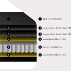 Ensemble Cadre Ă Lattes + Matelas Ressorts EnsachĂ©s – BLACK DREAM De DREAMEA PLAY – 160 X 200 Cm