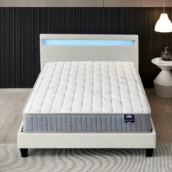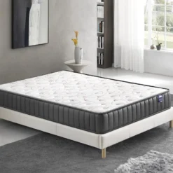 Ensemble Matelas Ressorts Ensachés + Lit Avec Tête De Lit 140x200cm Epaisseur 28cm Accueil MousseHD
