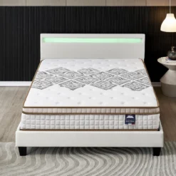 Ensemble Matelas + Lit Avec Tête De Lit 140×190 Cm, Eliha 20cm D’épaisseur Mousse Haute Densité