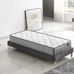 Ensemble Matelas Ressorts + Sommier 120x190cm, Eliha 20cm D’épaisseur Et Sommier Tissu Gris