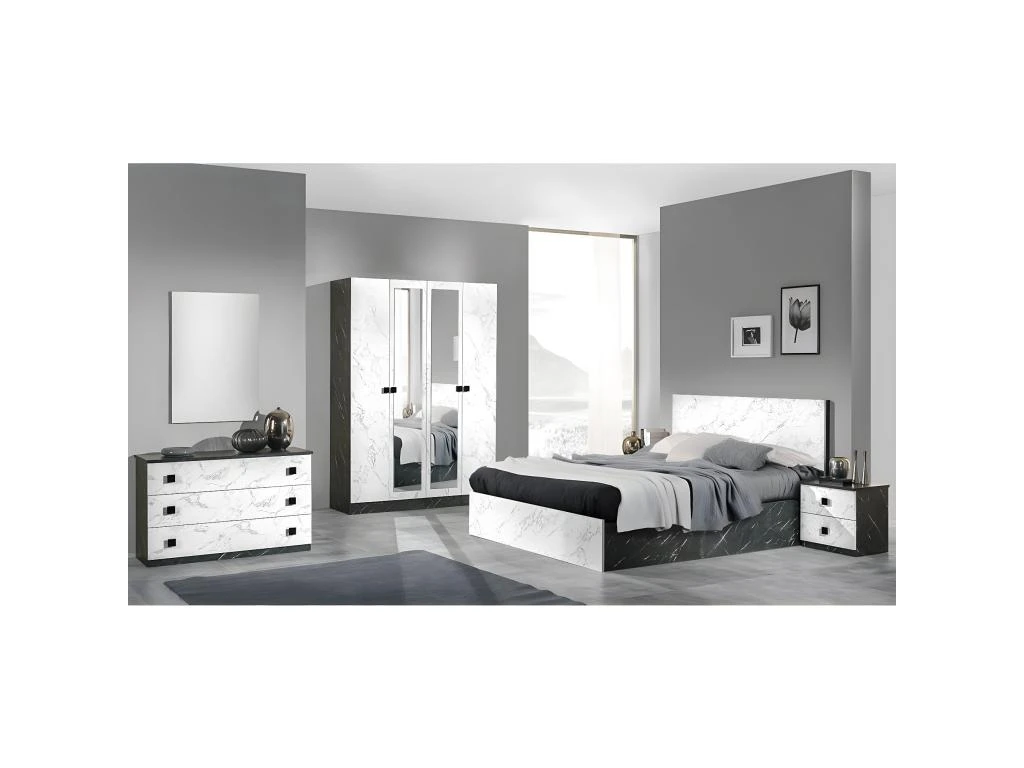 Osez l’originalité dans votre chambre avec notre gamme Mozayik, sa finition brillante et son motif marbré noir et blanc. L’armoire est équipée d’une penderie, et dispose de tablettes modulables selon vos besoins.