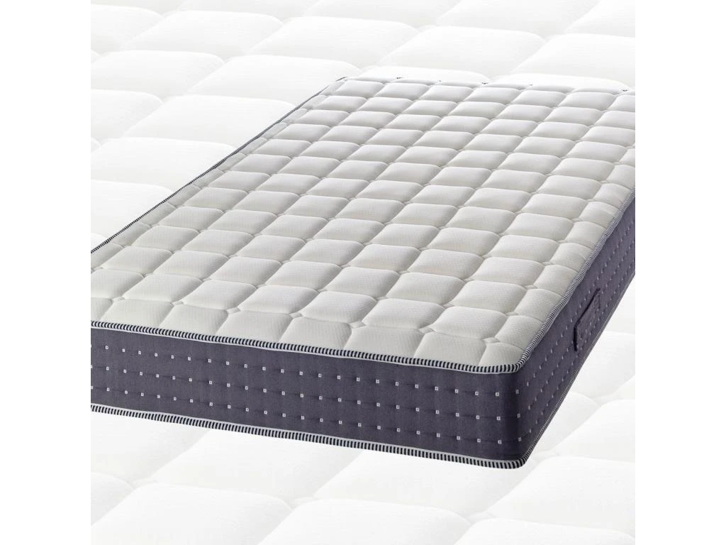 Matelas : Mousse Aertech plus H15cm de densité 30kg/m3. Portance : 3,4 kPa. Mousse à mémoire de forme H3cm de densité 43Kg/m3. Portance : 1,8kPa. Housse supérieure et inférieure matelassée fixe composée de Tissu stretch anti-acariens et hypoallergénique 100% Polyester. Face Hiver : Rembourrage face supérieure. Mousse à mémoire de densité 43kg/m3. Face Eté : Rembourrage face inférieure (60% coton, 40% polyester). Bordage Perimetral en tissu jaquard anti-acariens 100% polyester.