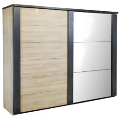 MADE IN BELGIUM : Armoire 2 Portes Coulissantes 217cm Effet Bois et Beton Ciré de la gamme Siwa.
