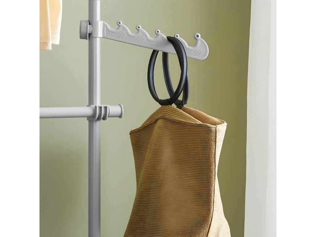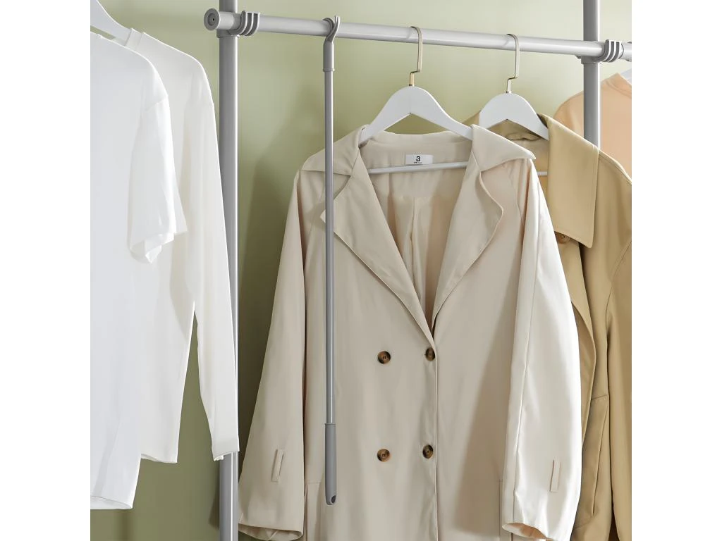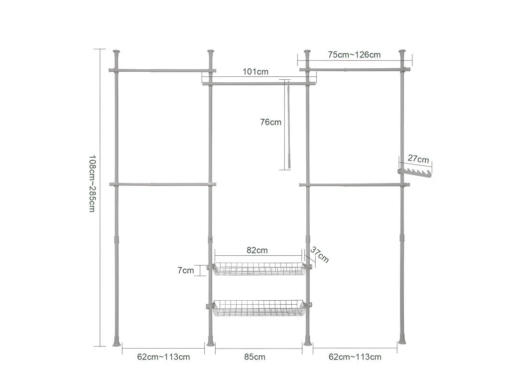 Contient de 5 barres porte-vêtements, 2 paniers, 1 bras de garde-robe latéral et 1 vêtement fork.