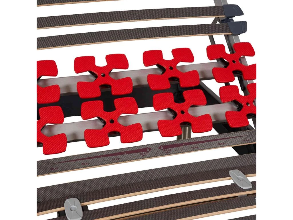 – Lattes : dotées de curseurs de fermeté sur la zone bassin (plus on écarte les curseurs vers les extrémités des lattes, et plus la fermeté augmente)