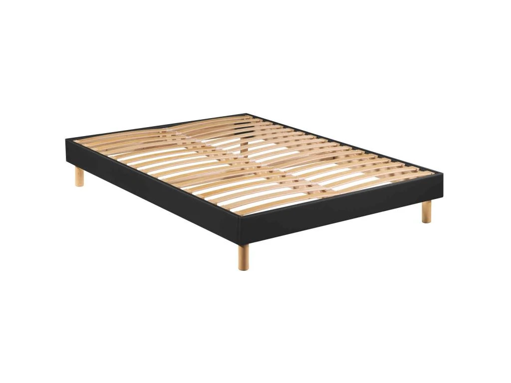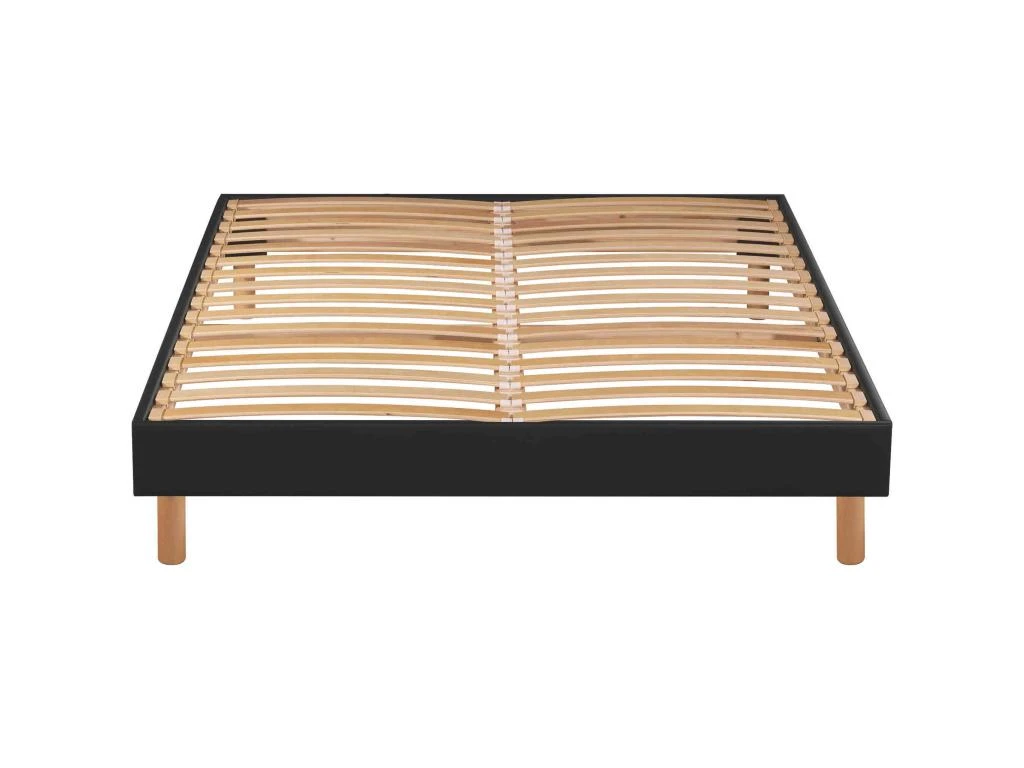 – Suspension : 2×16 lattes en bois de bouleau multiplis (en 140×190), insérées dans des embouts de protection