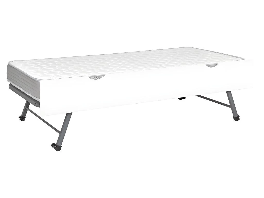 Le sommier gigogne avec façade Kala, la solution gain de place pour un couchage supplémentaire dans la chambre. Ce sommier supporte une charge de 70 à 75 kg pour un matelas d’épaisseur 13 à 15 cm.