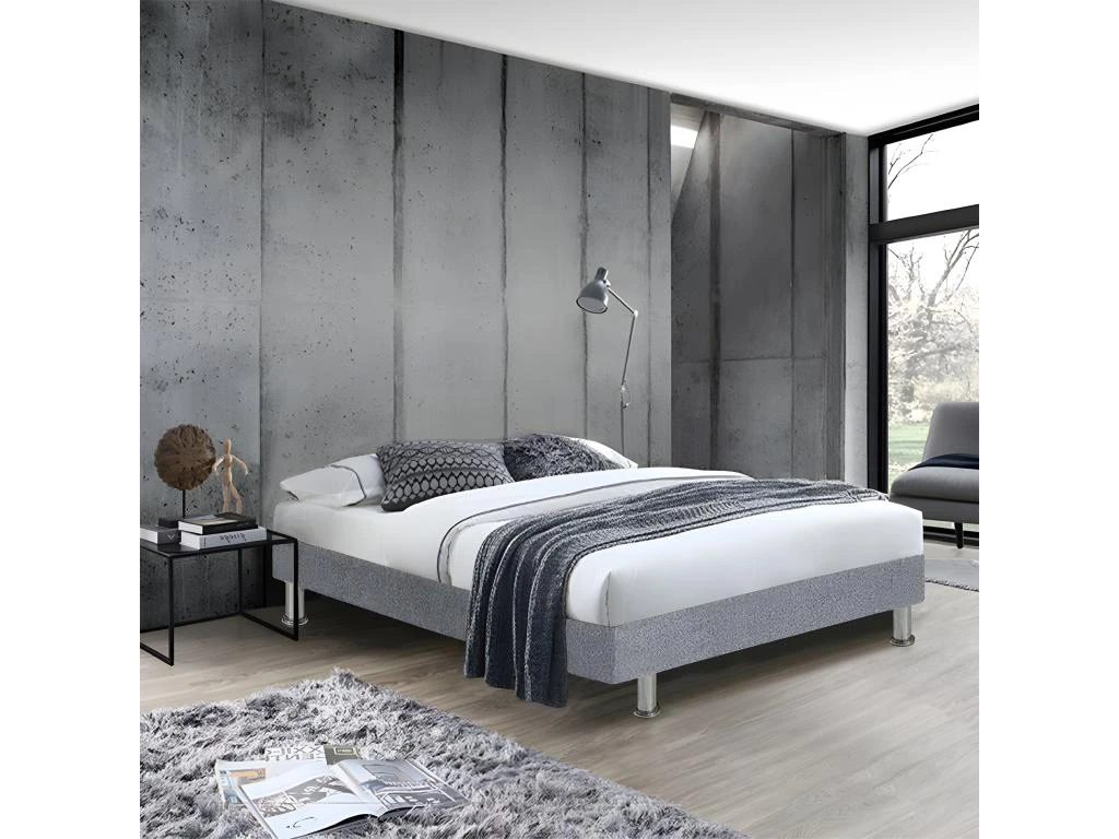 Apportez une touche d’élégance dans votre chambre grâce à ce sommier tapissier gris clair ! Sa couleur apporte une sobriété qui lui permettra de se fondre dans tous les styles. Ses piètements en métal et les lattes en bois massif soutiendront fermement votre matelas non inclus pour vous permettre un sommeil réparateur dans le plus grand des conforts ! Existe également en d’autres tailles et d’autres coloris.