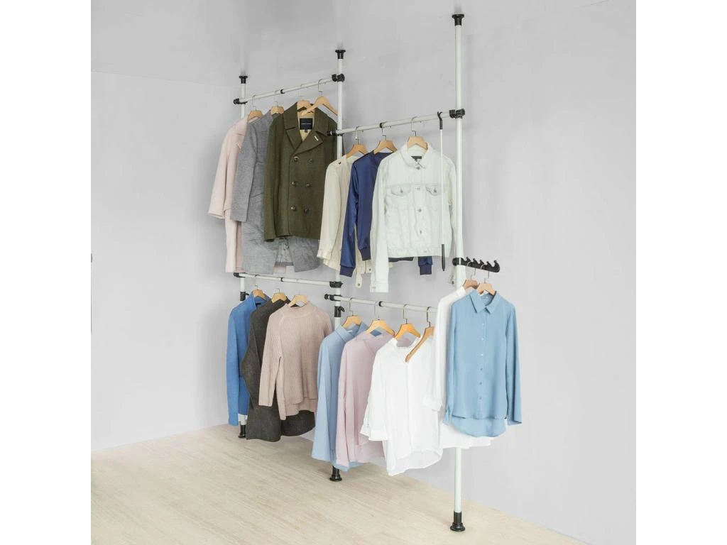 Elysée – Dressing Blanc Extensible Avec 2 Penderies, 4 étagères Et 2 Tiroirs