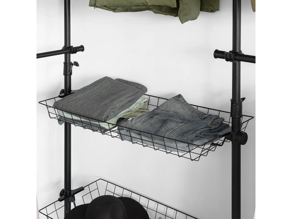 Dressing D’angle Avec Rideau Et 1 Porte – Avec Miroir – L231 Cm – Blanc Et Gris – BERTRAND