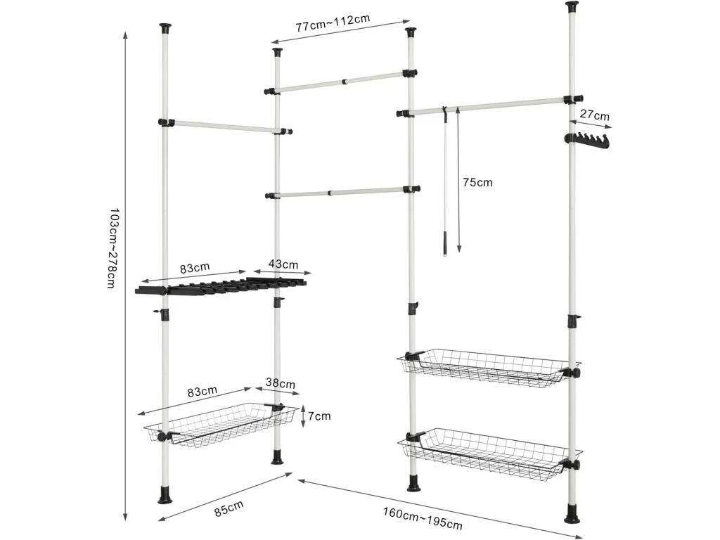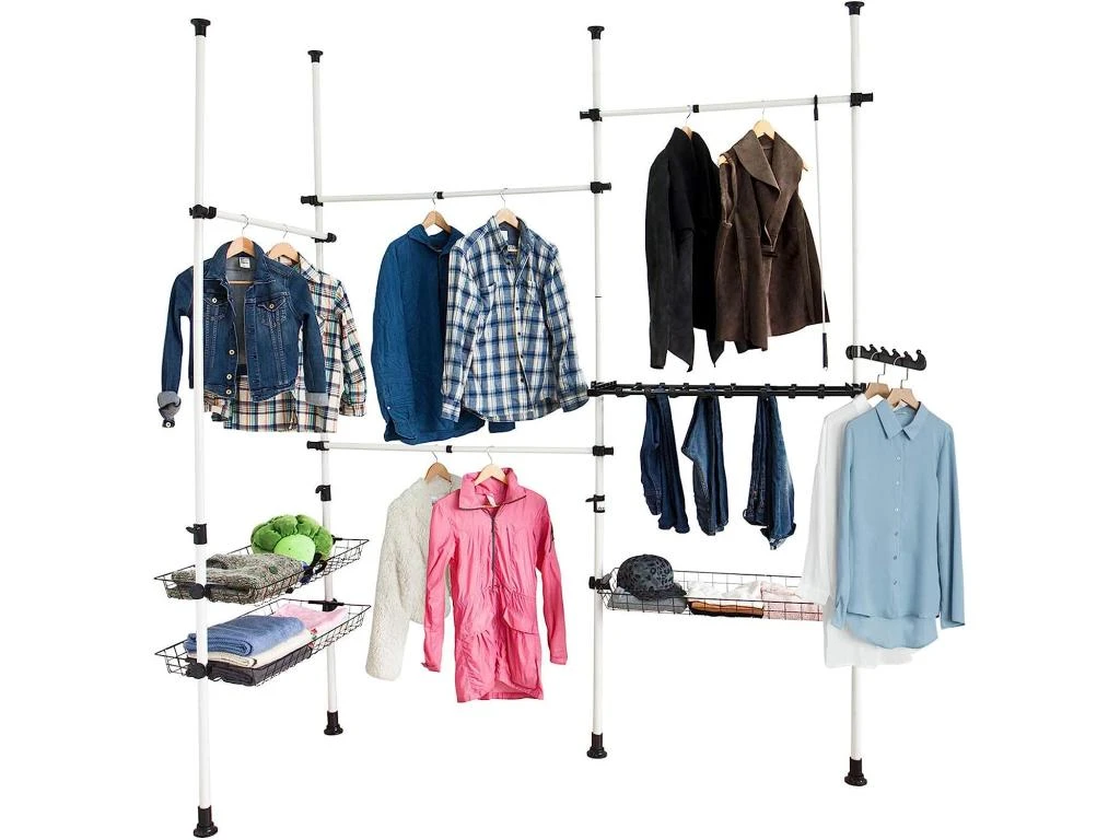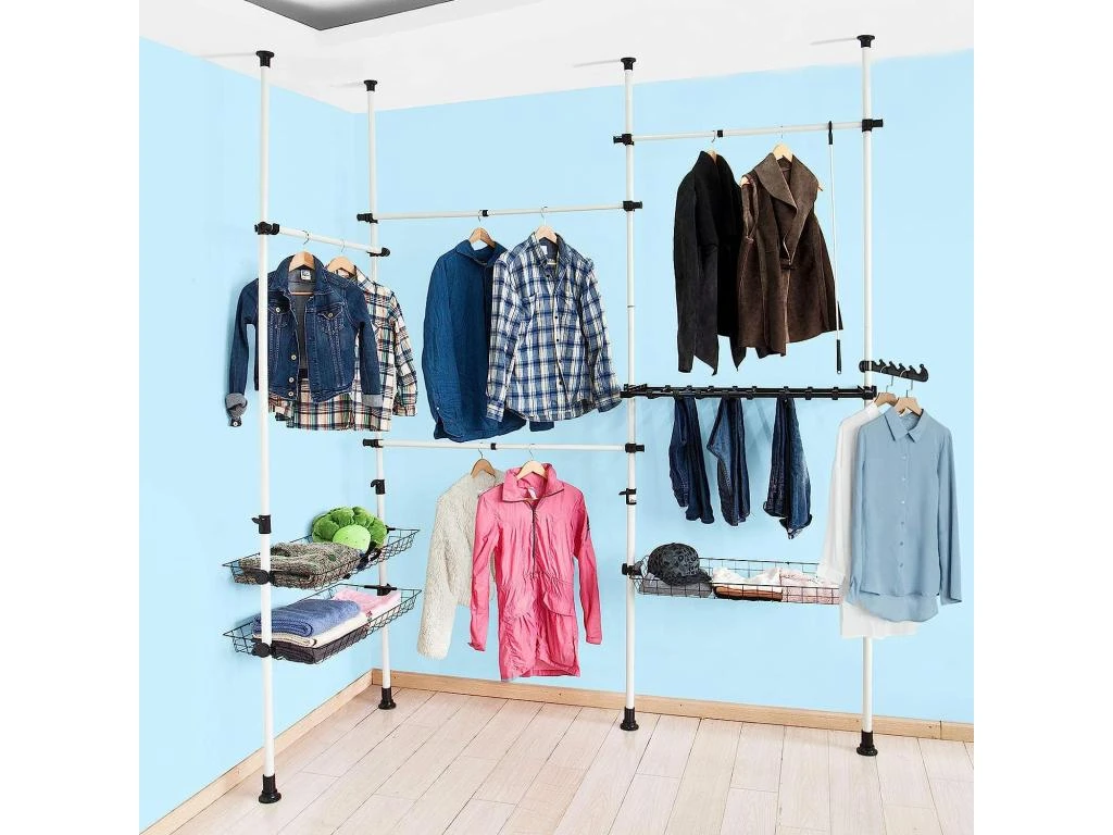 Elysée – Dressing Bois Extensible Avec 2 Penderies, 4 étagères Et 1 Tiroir
