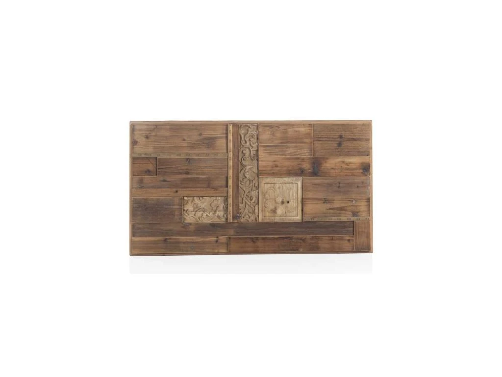 Agrémentée d’empiècements issus de corniches et d’éléments de bois sculpté, cette tête de lit adapté à une literie standard 90 cm deviendra ainsi un véritable objet de décoration dans votre chambre.