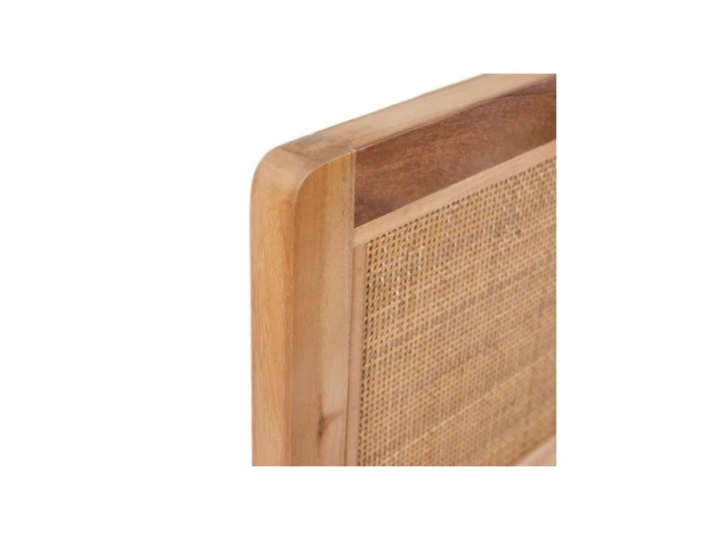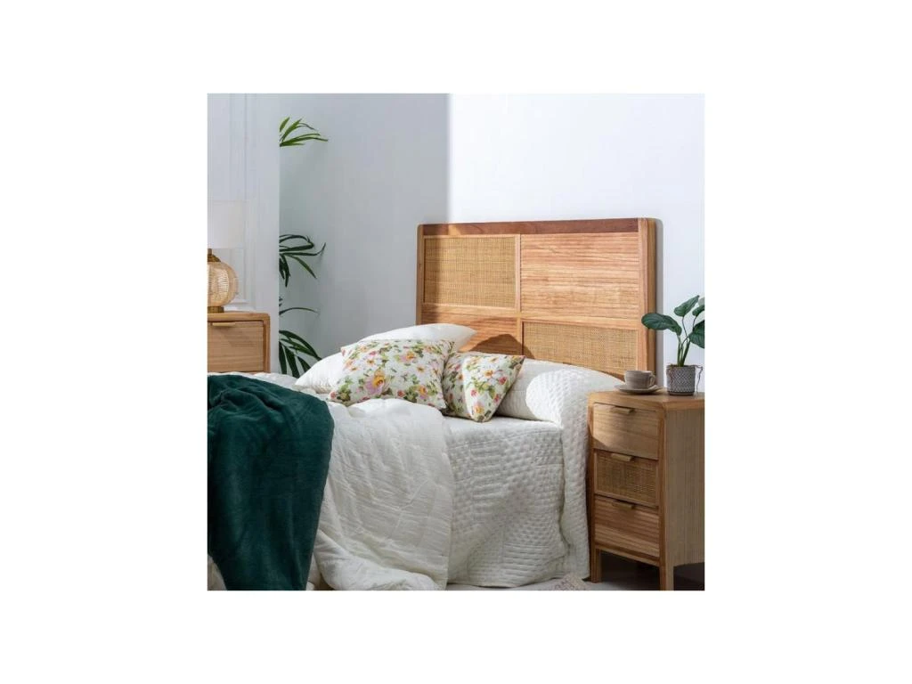 Look à mi-chemin entre les meubles qui proviennent de contrées lointaine et design inspiration meubles Scandianaves pour cette tête de lit adaptée à une literie 150 cm ou 160 cm.