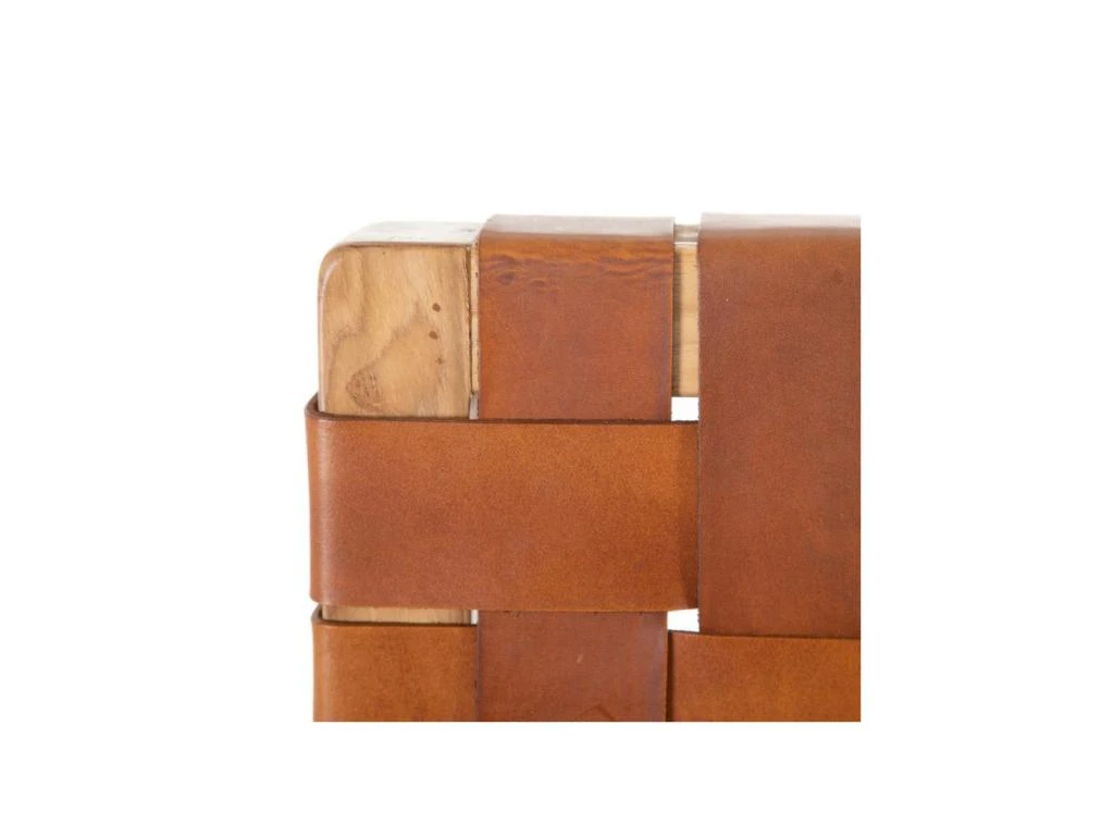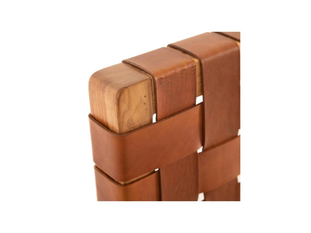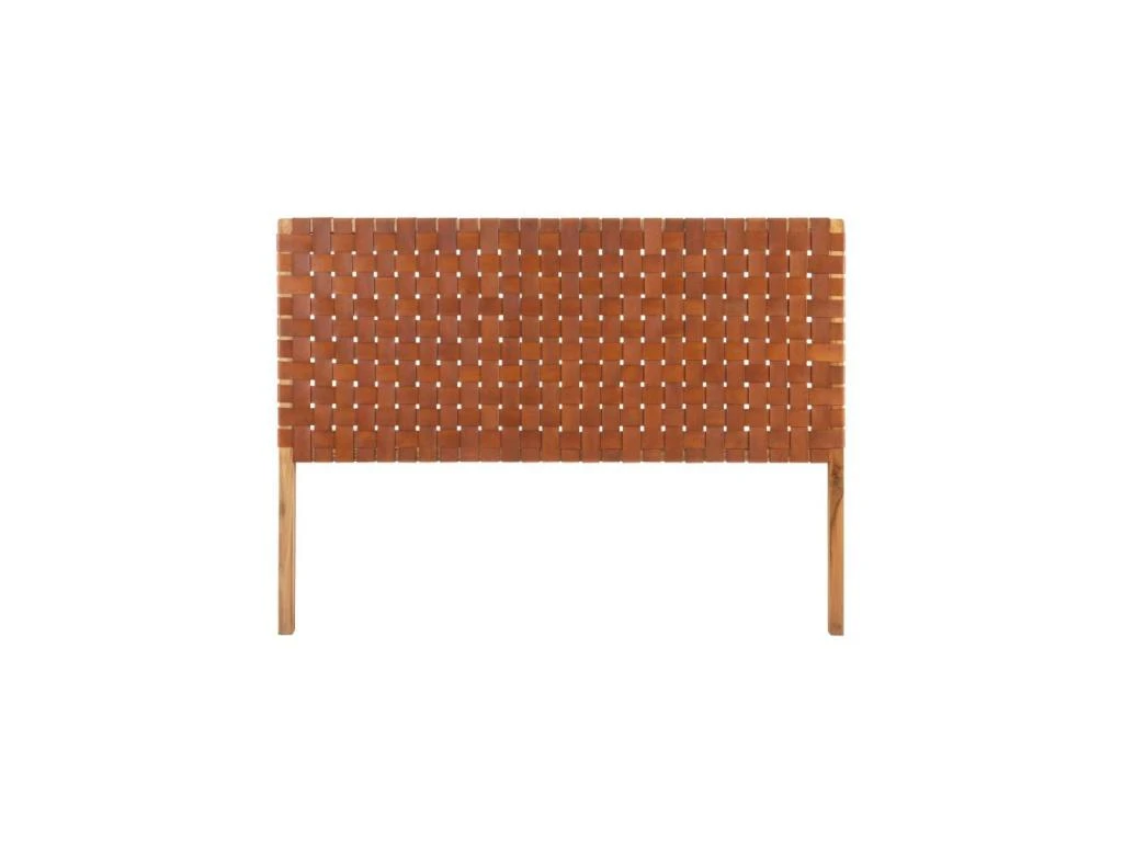 Mariant le cuir tressé et une structure en bois de Teck cette tête de lit s’intégrera aisément à une chambre à la déco bout du monde ou même à un environnement d’une maison de vacances.