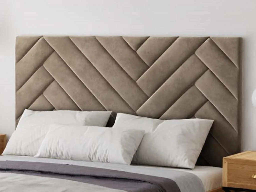 La tête de lit SUKIALI est ornée de motifs linéaires et diagonaux très designs. La douceur de son velours vous assure le confort et ses différents coloris disponibles vous permettront de trouver la teinte idéale pour parfaire votre décoration.