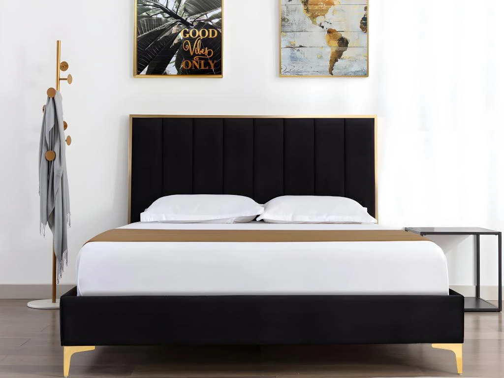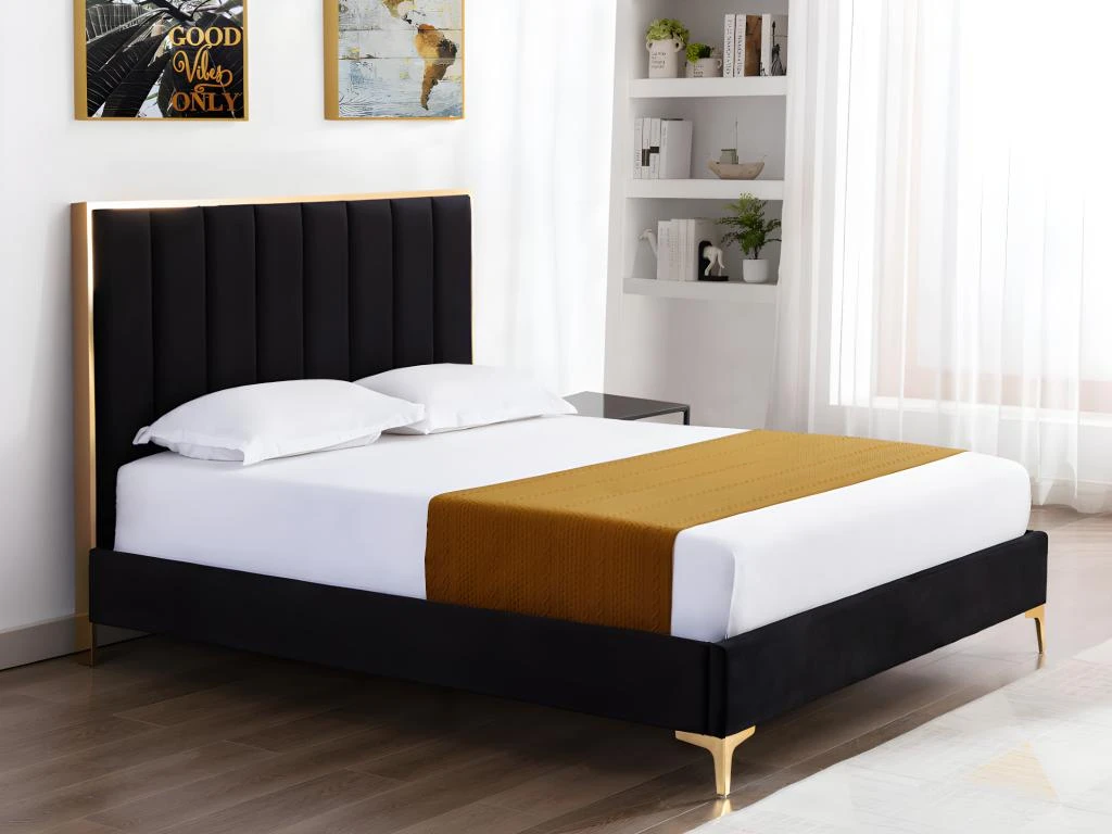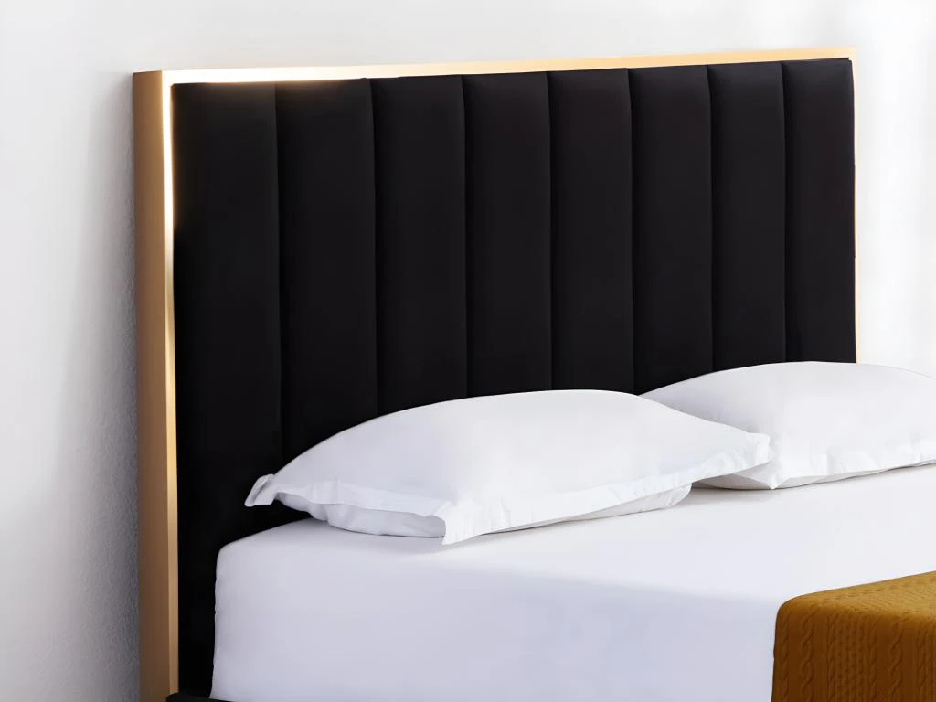 Glamour et sophistiqué, laissez vous tenter par la tête de lit CLARISSE ! Son revêtement en velours et ses détails en acier doré apporteront à votre lit une touche romantique et élégante.