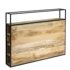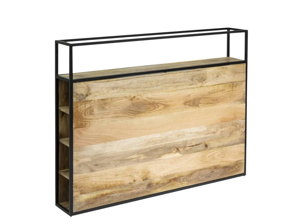 La tête de lit est un accessoire de décoration qui donnera le ton de votre décoration. Ici, nous vous proposons un modèle qui allie à merveille design et praticité. On aime les rangements intégrés, on aime l’alliance entre le bois et le métal enfin on aime ses dimensions parfaites pour une chambre parentale. Conçue en bois de manguier et métal, cette tête de lit vintage soulignera vos goûts pour les tendances actuelles. Son style industriel apportera un charme supplémentaire dans votre chambre. N’hésitez pas à l’associer avec de beaux chevets et de belles lampes à poser pour une décoration complète.Cette tête de lit vous sera livrée montée, il ne vous restera plus qu’à la placer dans votre chambre parentale.