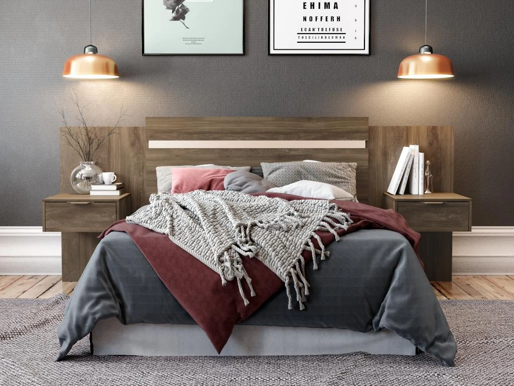 La tête de lit PARATI vous offre modernité et gain de place grâce à ses chevets dotés de tiroirs. Extensible, vous pourrez aussi bien l’utiliser pour un lit de 140 ou 160 cm.