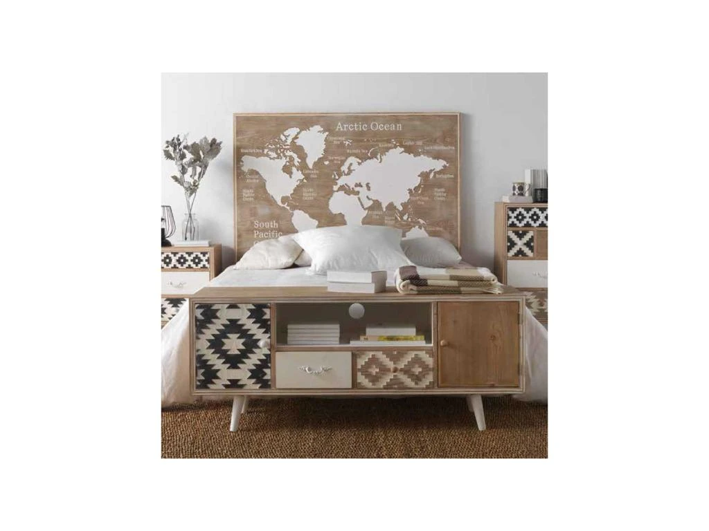 Originalité et fort potentiel décoratif pour cette tête de lit Mappemonde réalisée en bois de Sapin.