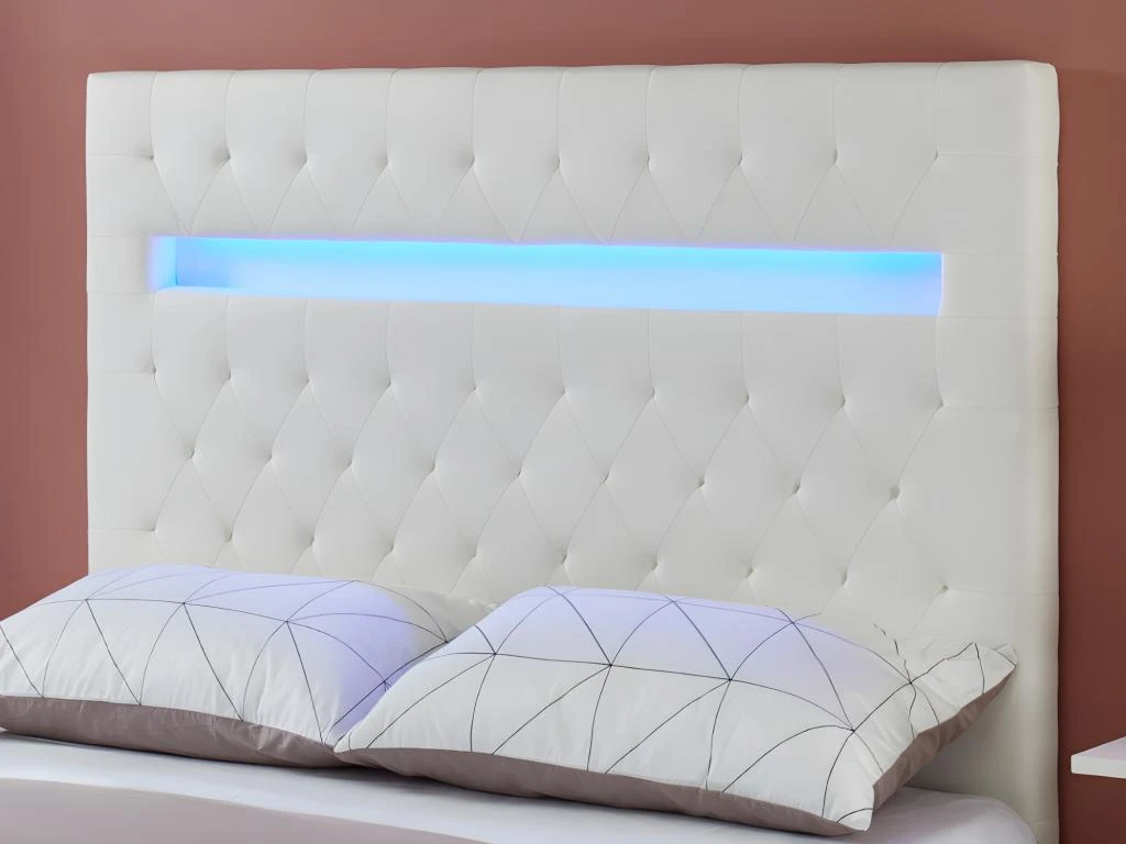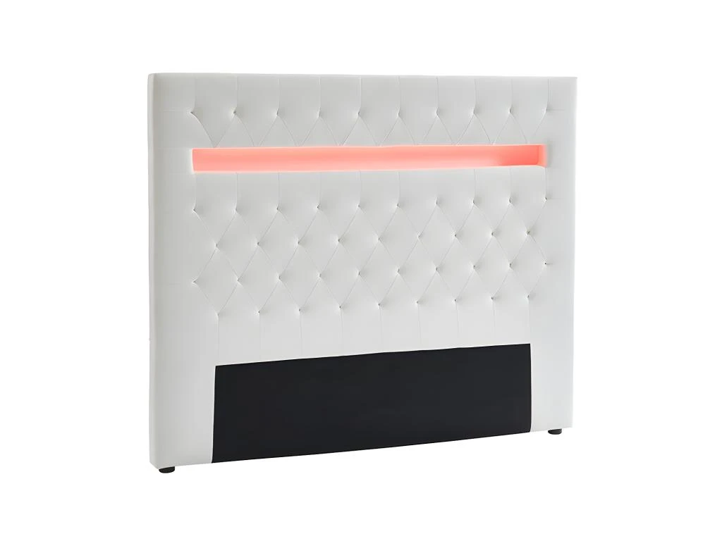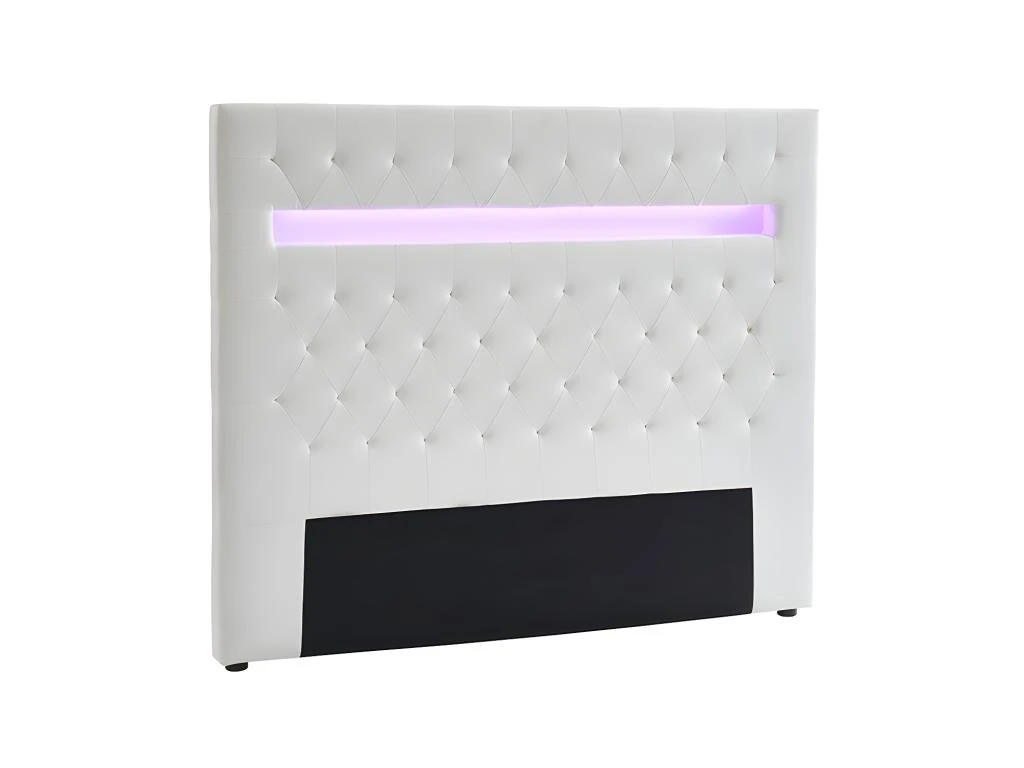 Très moderne, la tête de lit SUPERNOVA se démarque par sa finition capitonnée et par ses LEDs multicolores. Selon votre humeur et vos envies, changez la couleur des LEDs grâce à la télécommande fournie. Facilement nettoyable grâce à son revêtement en simili, cette tête de lit ne manquera pas de vous mettre des étoiles plein les yeux !