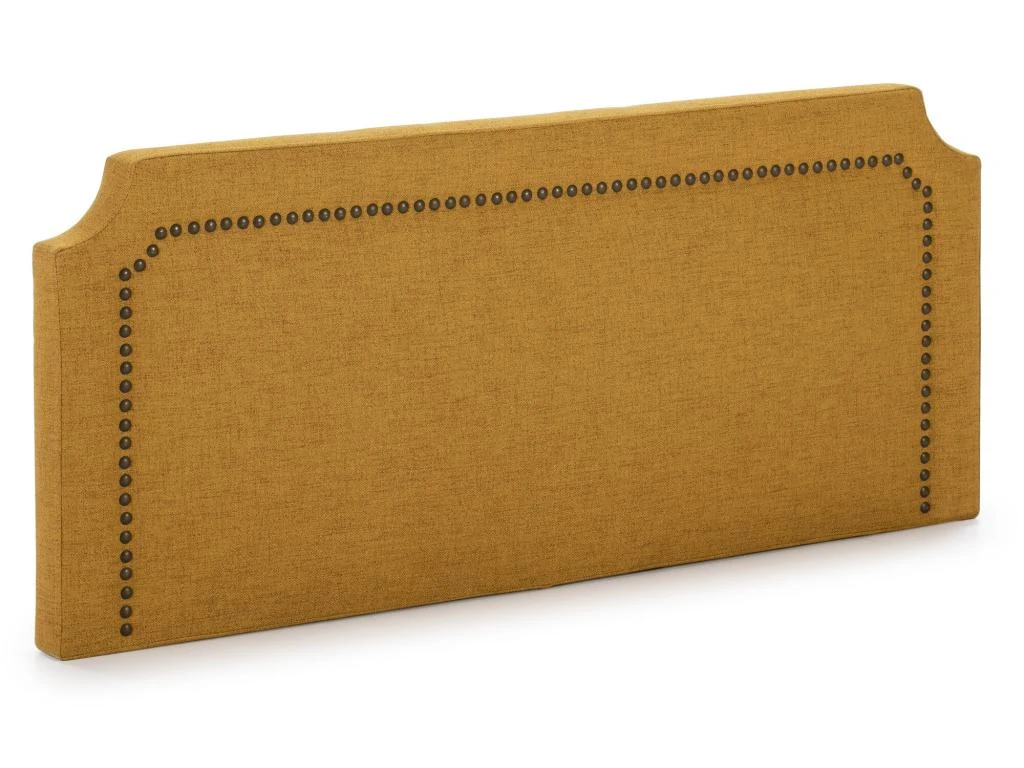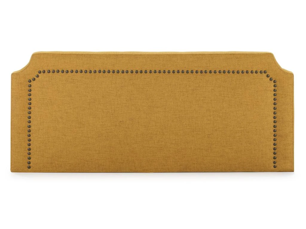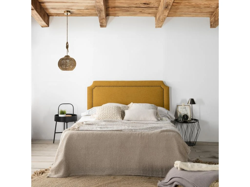 - Tapissée en tissus couleur Moutarde avec clous en marron veilli et disponible en plusieurs dimensions.