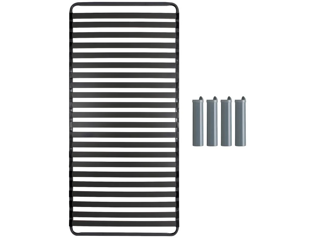 Suspensions : 22 Lattes en bois multiplis, revĂȘtement Anti-Gliss. Largeur Lattes : 48mm. Epaisseur Lattes : 8mm. Embouts en polyĂ©thylĂšne noirs clipsĂ©s sur le cadre.